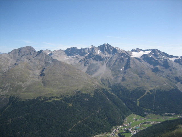 Weiter westlich sieht man das Sommerskigebiet an der Geisterspitze