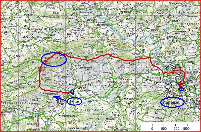 Routen-Infos (appenzell.ch): Gonten - Hundwiler Höhe - Appenzell Bergrestaurant Hundwiler Höhe: |
