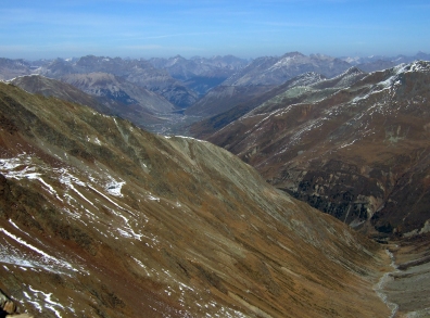 In Richtung Nordosten blickten wir in ein Tal hinein, das bis nach Bormio führt und