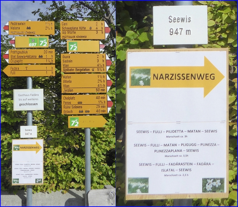 Infos zum Narzissenweg bei Seewis: (mit stellenweise abweichenden Routen) - praettigau.info: Narzissenpracht in Seewis - Maiensäss Valcaus / valcaus.ch: Wanderungen ***** Frühere FF-Wanderung ab Seewis: |