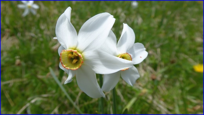 vorbei an Wiesen voller weisser Bergnarzissen