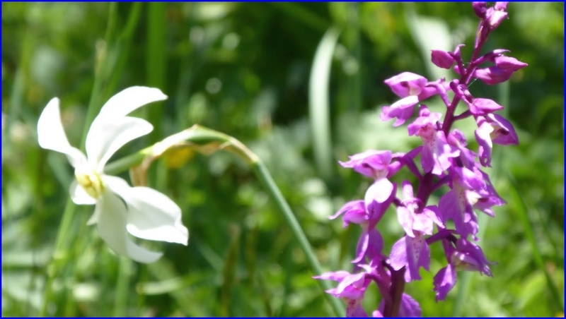 vorbei an Wiesen voller weisser Bergnarzissen