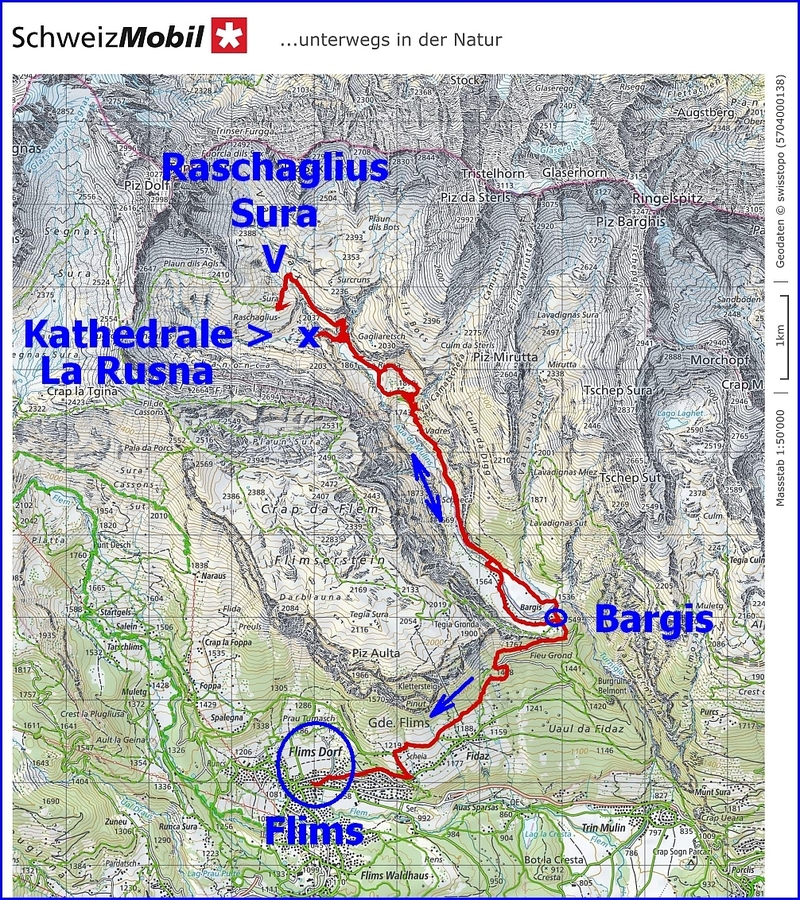 FF-Wanderung auf dieser Route im vergangenen Jahr: 28.06.16 / Zum Felsenkessel "Kathedrale" im Bargistal bei Flims Google-Fotos: L I N K ******** Weitere Infos: - Rother Wanderführer "Surselva": Zur "Kathedrale" von La Rusna - Arena Alva (13.08.10): Auf Entdeckungstour zu einem verborgenen Naturschauspiel - flims.com: Hochtal Bargis |