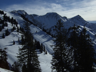 Für den Rückweg gab es zwei Möglichkeiten. Entwder auf dem gleichen Weg zurück zum Startpunkt gehen oder über den Grat zum nächsten Vorgipfel und weiter bis zur Krete. Wir entschieden uns für den Weg über die Krete. Von der Krete stiegen wir hinunter bis wir oberhalb Les Baudes wieder auf unsere Aufstiegsspuren stiessen. Diese Route sollte nur gewählt werden, wenn es die Lawinenverhältnisse zulassen. Von Les Baudes nahmen wir diesmal den Wanderweg durch den Wald zurück zum Auto. Ein letzter Blick beim Abstieg zurück zum Vanil de Van.