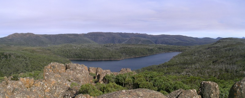 Vom Parkplatz marschierten wir ein Stück dem See entlang bis zum Start des Mt.Field East Circuit. Auf gut sichtbarem Weg durch Blockschutt stiegen wir stetig steigend zur Abzweigung zum Seagers Lookout hinauf.