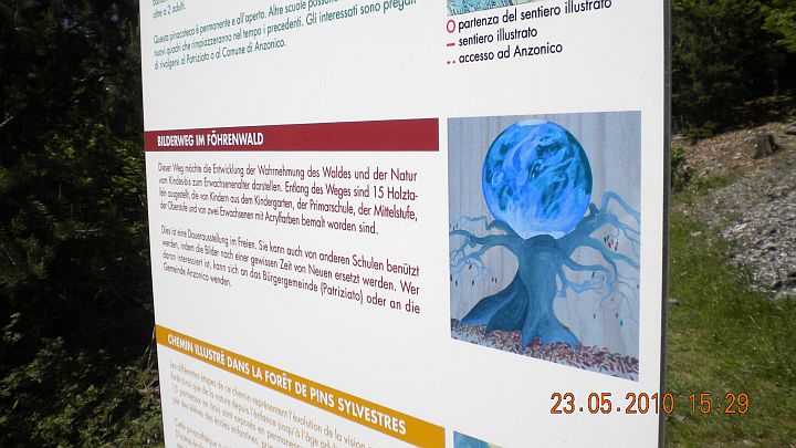 Vor Anzonico begehen wir den "Bilderweg im Föhrenwald":