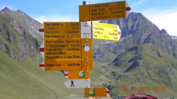 Und vom Ritomsee weiter bis zum Lukmanierpass sind an diesem Wegweiser 3h 20 Wegzeit angeschrieben: