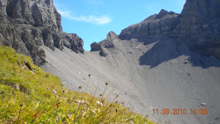 In diesem Geröllhang führt der Weg nach links hoch zur Bunderchrinde (den wir aber nicht gehen werden):