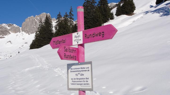 Komfortabel präparierter Winterwanderweg Richtung Mättental / Ruogig: