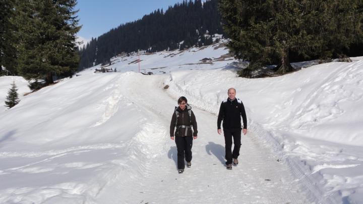 Bei Aschüel hat's endlich genug Schnee, so dass unsere Schneewanderung auf gewalztem Weg möglich ist: