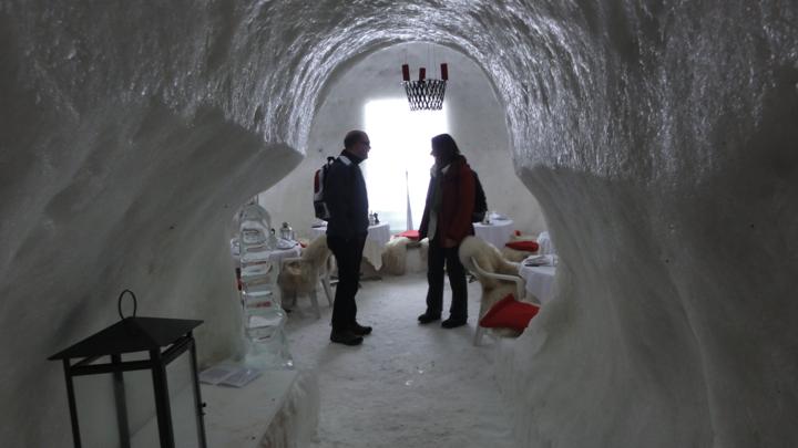 Von Kemmeriboden Bad aus könnte man die WinterWegWanderung noch um rund 1.5 Stunden bis Bumbach verlängern. Wir entscheiden uns aber für eine kurze Iglu-Besichtigung (und eine anschliessende Einkehr im Restaurant, wo Daniela und Bernhard vermutlich auf uns warten werden):