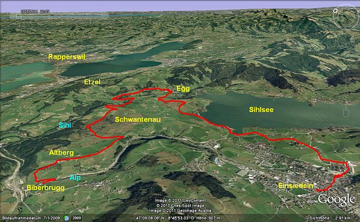 Zu dritt wanderten wir heute Sonntag von Biberbrugg nach Einsiedeln, nicht auf dem ca. 4 km langen direkten Weg, sondern auf einem rund 16 km langen "Umweg" via Altberg - Altbergried - Schwantenau (Hochmoor) - Tüfelsbrugg - Egg - Allmig - zum Sihlsee und über den Hühnermattdamm (Hüendermatt) nach Einsiedeln.
