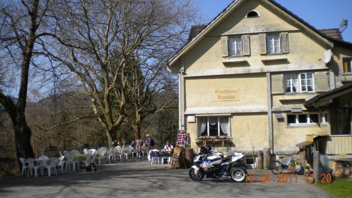Am schön gelegenen Gasthaus Kapelle können wir nicht vorbeiziehen ohne eine Pause einzulegen: