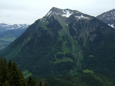 Auf dem gleichen Weg wanderten wir wieder hinunter in den Sattel und weiter auf dem Wanderweg Richtung Chrindi. Immer wieder gaben uns die Bäume den Blick frei auf Eiger & Co. sowie auf den, der Simmenflue gegenüberligenden, Niessen.