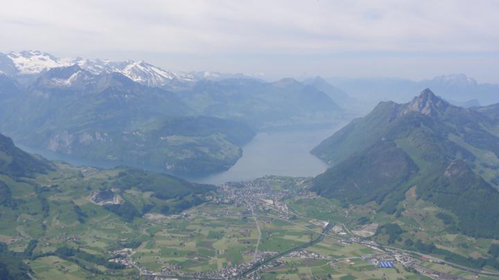 ..... sowie hinunter nach Brunni, wo wir vor anderthalb Stunden mit der Seilbahn losgefahren sind: