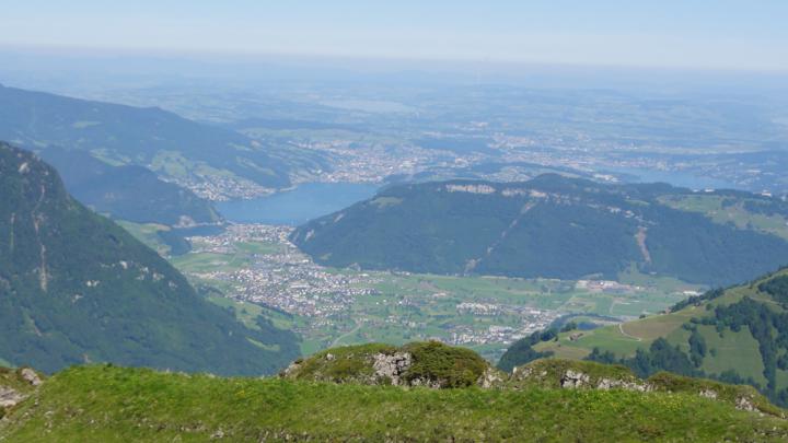 Tiefblick durch die Peterslücke; im Hintergrund die Rigi, links die Musenalp: