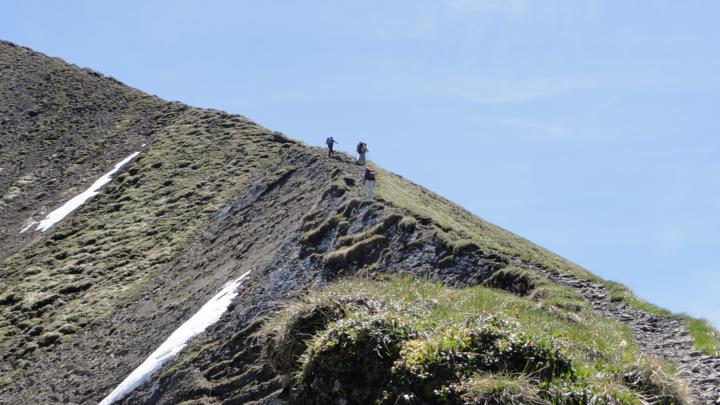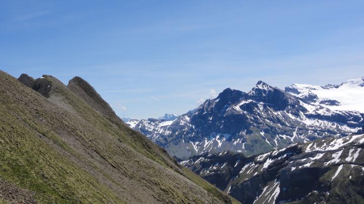 Eine Gratwanderung "vom Feinsten" steht uns bevor und das Ziel, den Brisen dort vorne, haben wir meistens im Blickfeld: