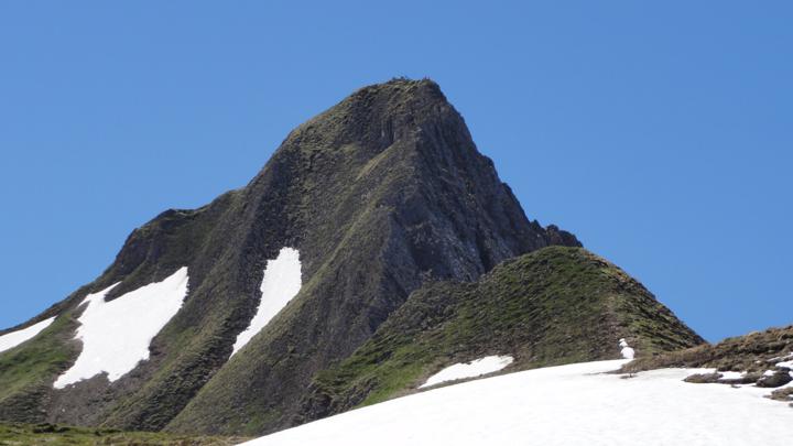 Hinter uns der Glattegrat mit den grossflächigen Schneefeldern: