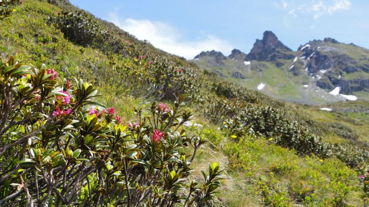 Nachdem wir kurz den Klettereien zugeschaut haben, nehmen wir beim Widerstein den Weg Richtung Wildmad nach Süden. Nach Osten führt ein anderer Übergang über die Berglimatt ins Sernftal nach Matt: