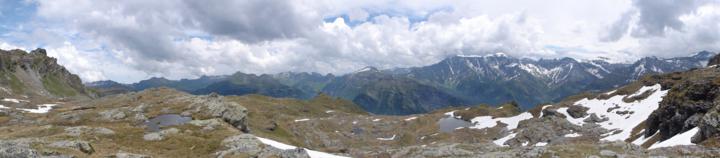 Links Höch Turm, rechts darunter die Charetalp, die wir im vergangenen Jahr von der Glattalp her durchwandert haben: http://www.freizeitfreunde.ch/blogs/233