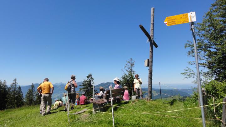 Hier bei der Brüschrainhöchi teilen wir uns in zwei Gruppen auf, ein Teil geht hinunter zur Haggenegg und dann weiter auf den Bus in Brunni, die andere Hälfte geht weiter in Richtung Mostelberg: