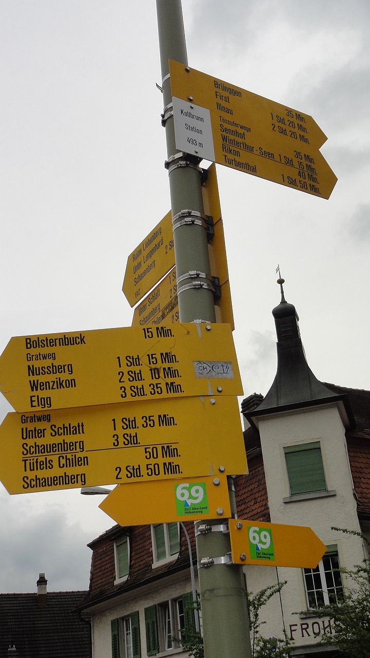 Um 14:45 Uhr kommen wir trockenen Fusses bei der Station Kollbrunn an; die angekündigten Gewitter haben uns glücklicherweise verschont: