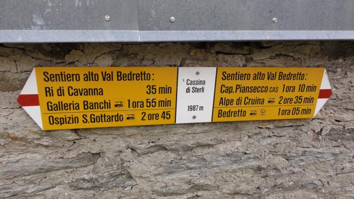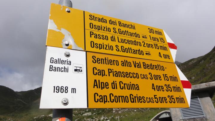 Wanderstart ist um 09:45 Uhr bei der Galleria Banchi, wo wir - vom Gotthardpass herkommend - das Postauto verlassen. Gegen 14 Uhr werden wir die Capanna Piansecco CAS erreichen und um 16 Uhr bei der Bushaltestelle Cruina unterhalb des Nufenenpasses ganz hinten im Val Bedretto ankommen. Wenn man früher starten will, ist auch eine Postauto-Anfahrt von Airolo her möglich. Die Fahrt von Andermatt über den Gotthardpass bis zur Galleria Banchi ist aber an sich schon ein Erlebnis.