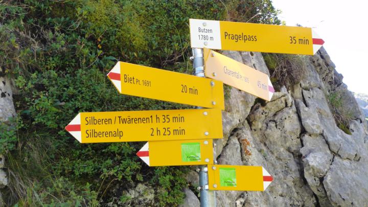 ..... muss man für den Direktaufstieg zu den Silberen / Twärenen den Weg Richtung Butzen wählen (die Wegvariante via Biet - Alpeli - Silberenalp ist bedeutend länger aber wohl weniger steil):