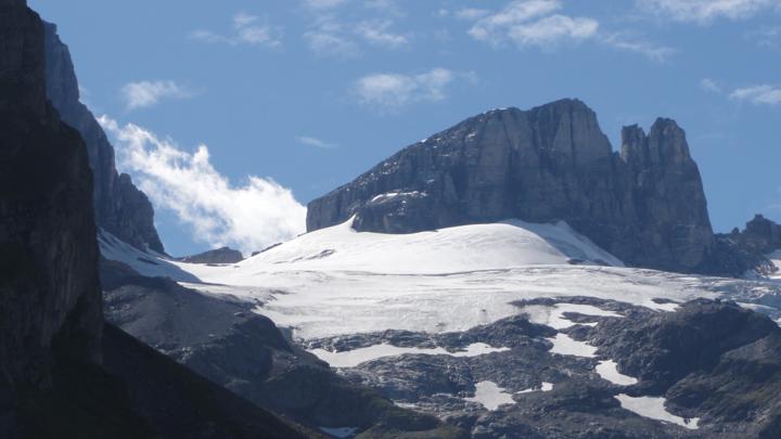 Vor uns die vergletscherte Bergwelt zwischen Gross und Klein Spannort und Titlis: