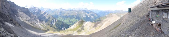 Nochmals ein Blick zurück auf unsere Abstiegsroute und die Tschingelhörner mit dem Martinsloch: