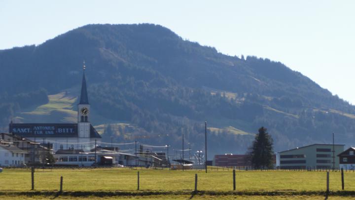 Blick zurück auf die imposante Kirche von Rothenthurm; dahinter der Nüsellstock, den wir am vergangenen 26. Juni Richtung Hochstuckli erwandert haben: http://www.freizeitfreunde.ch/blogs/296