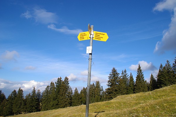 Wegweiser beim Hübschholz; die ganze Route ist sehr gut ausgeschildert
