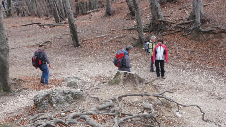 Unser Weg führt nicht zum Klettersteig, sondern nach links (Richtung Osten):