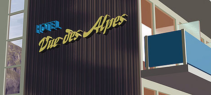 Sowohl der Blick in die Ferne als auch die Ergründung der Psyche werden provoziert und zeigen auf, wie schnell sich ein Verlust an Sicherheit und Wärme einstellen kann. Der Winter hat auch humorvolle, unerwartete Seiten. Jean-Frédéric Schnyder präsentiert mit seiner Arbeit Robidog eine witzige Folge des Wintereinzugs im Mittelland. Der romantischen Schneelandschaft setzt er das Abbild eines einsamen Robidogs in der matschig grün-braunen Landschaft der niederen Regionen gegenüber. Das Grün des Abfalleimers für besondere Zwecke kann als zynischer Kommentar aufgefasst werden. Ahnlich verhält es sich mit der Arbeit Hotel von Monica Studer und Christoph van den Berg, Die Nahaufnahme einer Hotelarchitektur mit einem Balkon und der Aufschrift <Vue des Alpes> genügt, um lebhafte Erinnerungen an den Winter wachzurufen. Dieses Winterbild ist ein Spiegel einer kollektiven Vorstellung von Wintererlebnis, lm Unterschied zu Schnyders Landschaft vermag die wachgerufene Assoziation an Winterferien auch Sehnsüchte zu wecken.