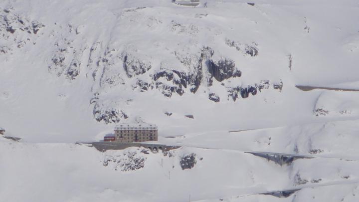 Das 500 Meter westlich gelegene "Hotel Grimsel Passhöhe" liegt hingegen im Winterschlaf und ich kann auch keine Website mit näheren Infos über das Gasthaus dort drüben ausfindig machen: