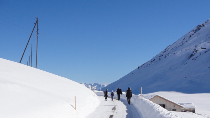 sind wir heute zu fünft auf gewalzten Winterwanderwegen von Obergmeind (oberhalb von Obertschappina) zum Glaspass und zurück gewandert.
