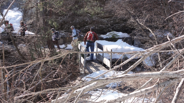 Jenseits der Brücke scheint der Zugang zur "Bisse Neuf" durch Schneemassen und umgestürzte Bäume versperrt zu sein, doch etwas weiter unten .......