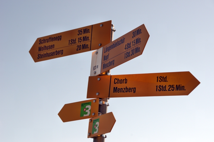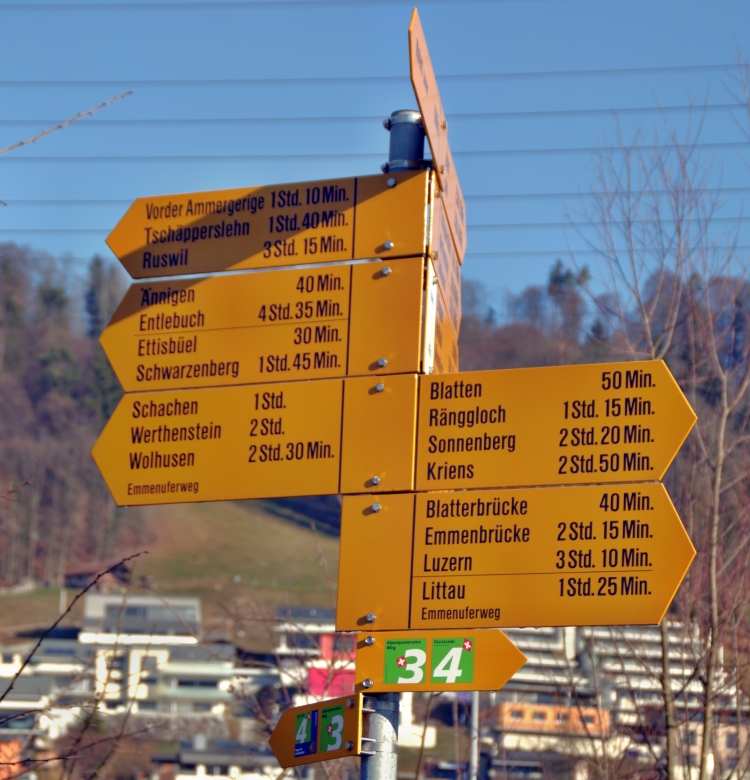 Am Kreisel in Wolhusen steht dieser Wegweiser. Ich habe es einfach da ich immer der Nummer 3 folgen kann.