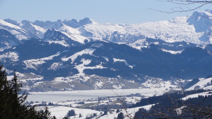Vom Aussichtspunkt Bellevue auf dem Gottschalkenberg öffnet sich das Blickfeld wieder Richtung Norden: