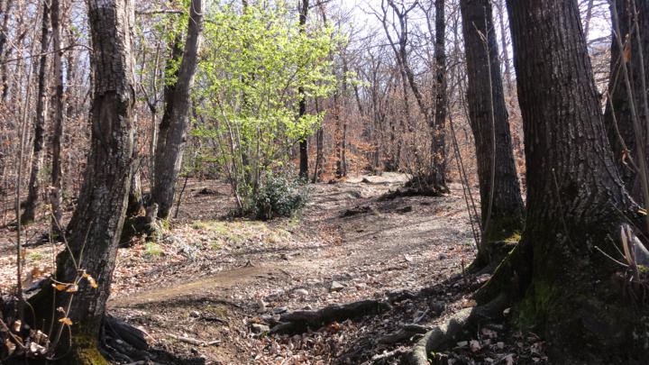 Östlich vom See führen verschlungene Waldwege durch die Hügellandschaft. Wenn man einen vorgesehenen Weg verfehlt, was mir auch passiert, ist das nicht schlimm, denn das Gebiet ist kleinräumig und der nun eingeschlagene Weg ist vielleicht um so schöner: