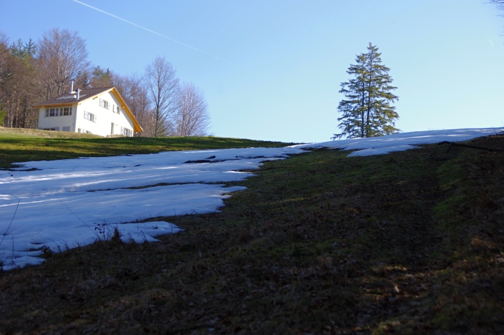 Hier oben ist man wieder in bewohnten Gefilden; es liegt aber noch Schnee.