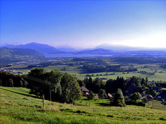 Der Zugersee, eingebettet von der Rigi und dem Pilatus, aufgenommen am 11.09.2011
