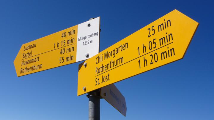 Kurz vor 10 Uhr starte ich beim Bahnhof Sattel-Ägeri, um 11:15 werde ich auf dem Morgartenberg und gegen 14 Uhr wieder zurück in Sattel-Ägeri sein: