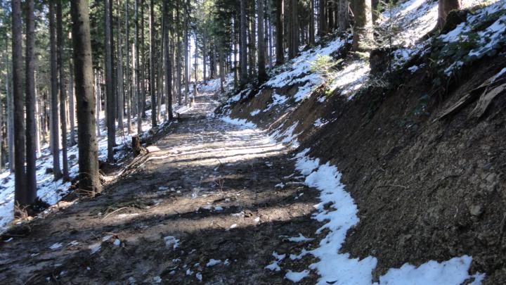 Abstieg über schönen Waldweg an der Westflanke des Morgartenberges: