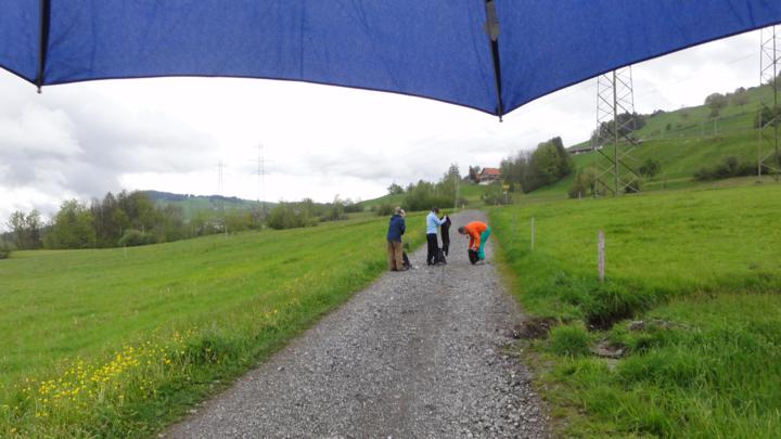 Um 14 Uhr machen wir uns an den Schlussaufstieg zum Dreiländerstein / Wildspitz auf dem Höhronen; Meteoriteneinschläge sind in dieser Gegend selten aber nie völlig auszuschliessen; bei Regenwetter wird das Zielgebiet hier vor uns aber meistens verfehlt: