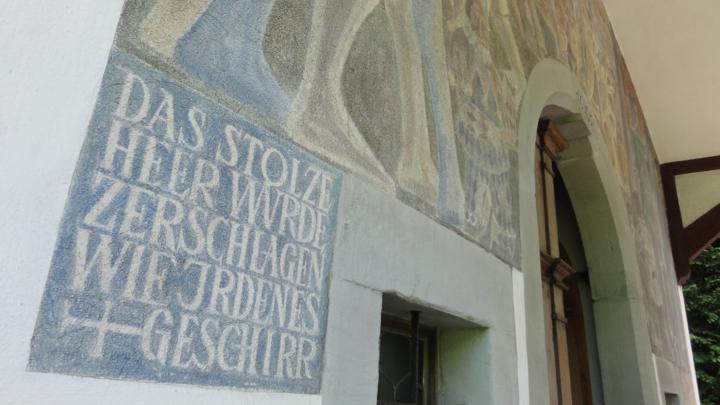 Bei Schornen erreichen wir den Talboden und das historische Morgartengelände; hier die "Schlachtkapelle":