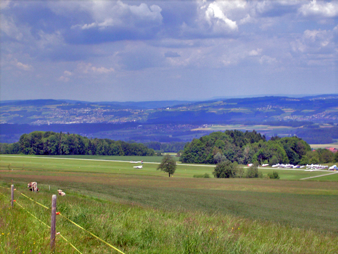 ...Segelflugmeisterschaften. Er liegt schräg gegenüber dem Mutschellen (hinten sichtbar) und bietet den...