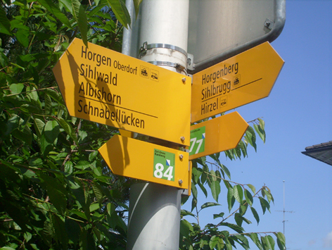 In Sihlwald begegne ich dem variantenreichsten Wegweiser, den ich je gesehen habe