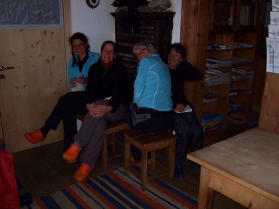 Da der Ofen im Neubauteil der Hütte sich nicht wirklich zum Heizen eignete, wurde nach Sonnenuntergang der Vorhang gezogen und wir versammelten uns im gemütlichen, alten Teil der Hütte und genossen die wohltuende Wärme des alten Specksteinofens.
