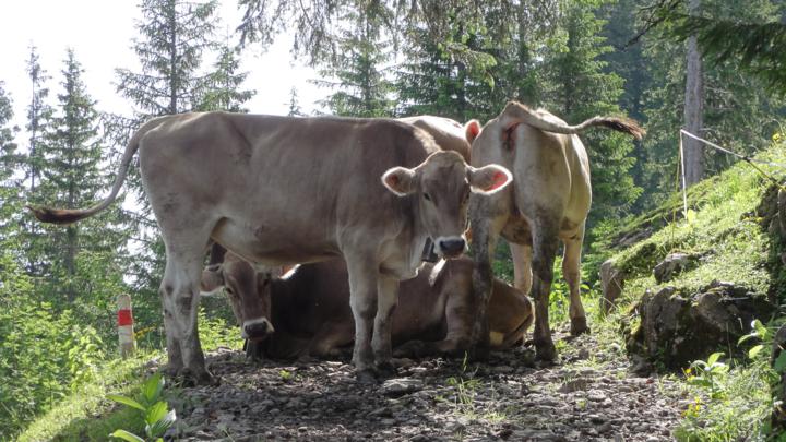 Hier oben am durchfeuchteten Hang über dem Tröliger Boden (zwischen Bärhalten und Geissbützen) ist der Wanderweg durch das Vieh stellenweise in einen unbegehbaren Morastpfad verwandelt worden und man muss seitlich ausweichen:
